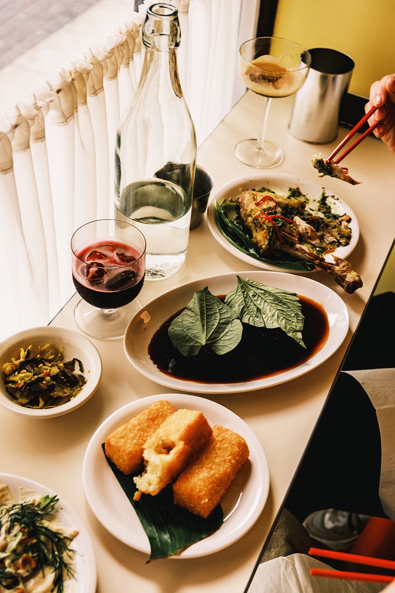Lai Rai is a Vietnamese bar and canteen serving everything from bánh mì and iced coffee by day to snacks, sharing plates and ice-cold beers by night. The space, styled by design duo House of Baby, leans into on-trend buttery tones and shiny textures in a playful nod to Saigon’s classic canteens. Blair Nguyen of Vinaxoa of behind the food and will be familiar to anyone who’s graced any of her pop-ups, which have earned cult status across south-east London. The menu is nostalgic and inventive, drawing from her childhood in Saigon, with dishes like fried prawns wrapped in young green rice on sugarcane stalks with peanut and nước chấm satay sauce; papaya and jellyfish salad; and a velvety fermented tofu dip served with sesame crackers. Larger plates are equally considered: crispy twice-cooked chicken is served with a fresh herb sauce and smoky betel leaf beef is finished with a homemade BBQ coffee jus.