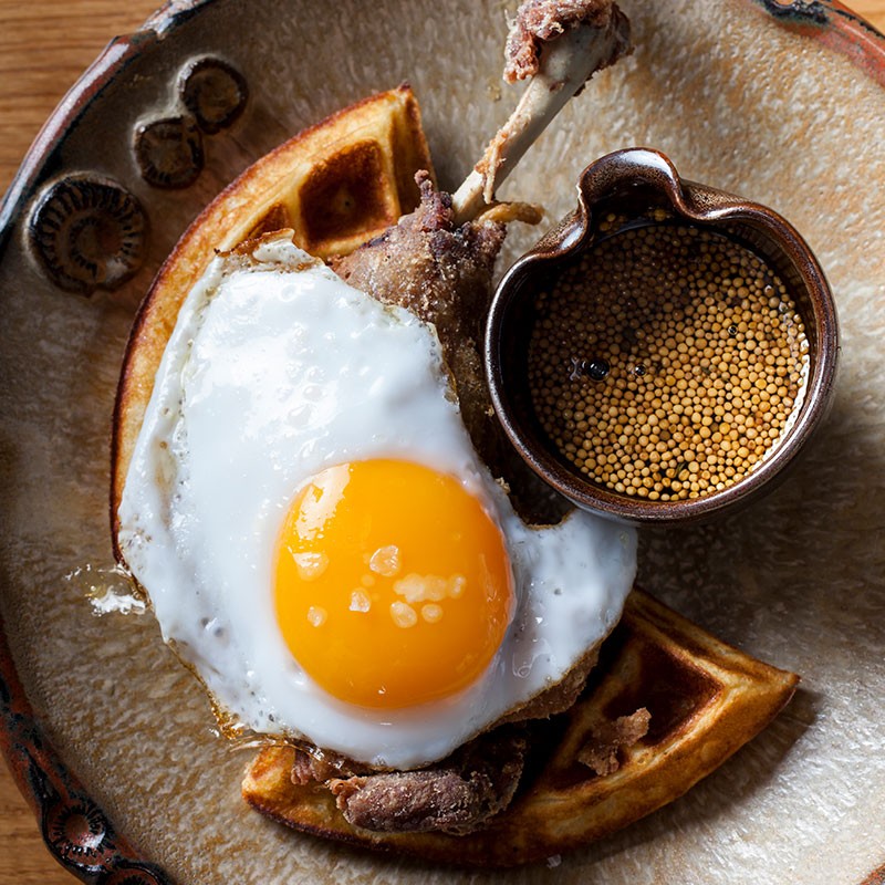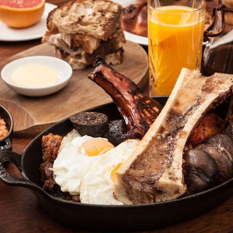 If a cracking full English is your preferred way to start a working day, this Guildhall restaurant is hard to beat. Meat is firmly on the menu and the cooked breakfast for two is as protein-heavy as they come. Think smoked bacon chops, sausages, black pudding, bubble and squeak, grilled bone marrow, baked beans, fried eggs, grilled mushrooms, roast tomatoes, HP gravy and unlimited rounds of toast. Don’t miss the luxe touches – the bubble and squeak is enriched with beef short rib, the baked beans with pig’s trotter.