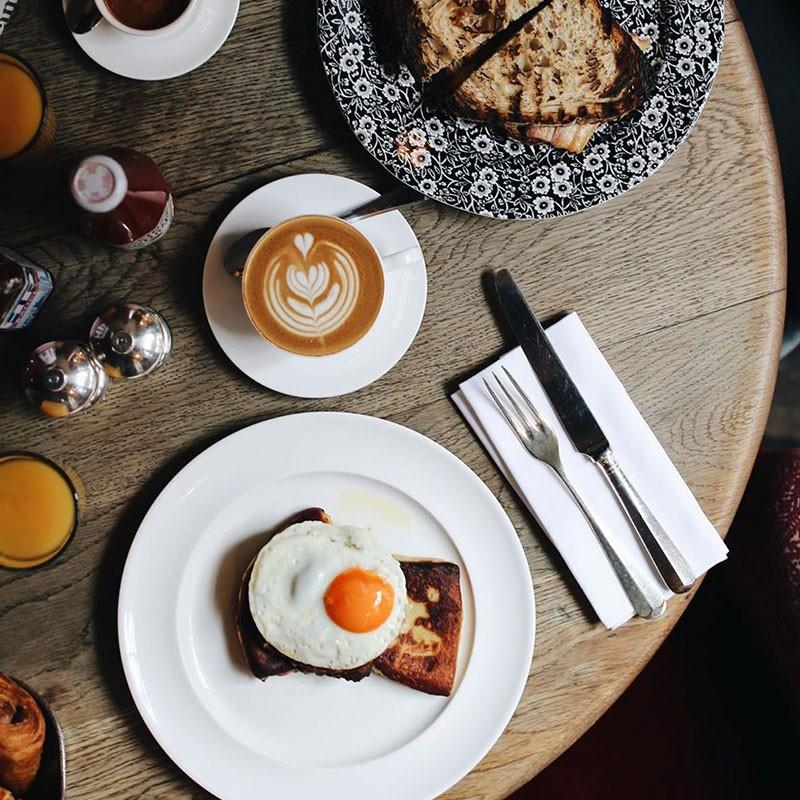 You’ll find Jason Atherton’s Fitzrovia establishment in the swish locale of The London Edition hotel – a louche place to take a client or business partner if ever there was one. The breakfast menu is all about classic British dishes done right, using ingredients sourced from within these isles. Star attraction is the Berners Tavern Full English, which comes with all the trimmings including oak-smoked Scottish salmon and scrambled eggs.