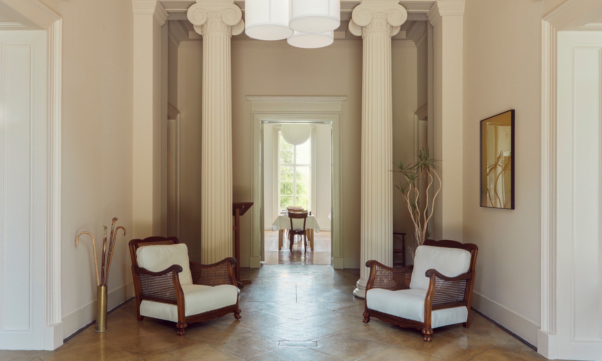 Through another arch off the grand foyer, what was once the grand house's breakfast parlour is now The Dining Room. One of the most striking things about the restaurant is its use of candlelight – even at breakfast, it eases you into the morning. With high ceilings, ornate fireplaces, starchy white tablecloths and statement windows, there’s more than a nod to Sessions Arts Club, but the décor has been updated to reflect the hotel’s surroundings – there’s a black-and-white photograph of a fishing boat above one of the fireplaces, and dried stems from the wild meadow in the grounds poke out of ceramic pots. Each evening, it all comes together to create one of the most inviting dining rooms we’ve encountered.