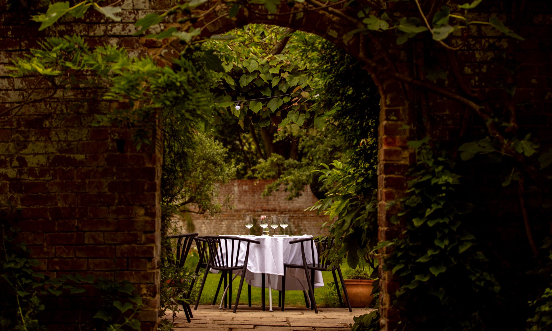 This beautifully renovated 17th-century farmhouse is a ten-minute drive inland from the charming town of Deal. Now, the Grade ll-listed property is a lovely, welcoming restaurant with rooms. The restaurant is housed in a conservatory in the centre of Updown’s rambling grounds. Inside, guests dine beneath hanging vines and wisteria surrounded by original brickwork and antique mirrors. The set-up is simple – picture sculptural black dining chairs, white tablecloths, minimalist floral arrangements on each table and huge plant pots filled with foliage. Diners can watch the chefs in the open, semi-alfresco kitchen, which is built into the old stable wall, as they tend to the wood-fired grill and original farmhouse bread oven. In the summer months, tables spill out onto a pretty terrace overlooking the main house and gardens.