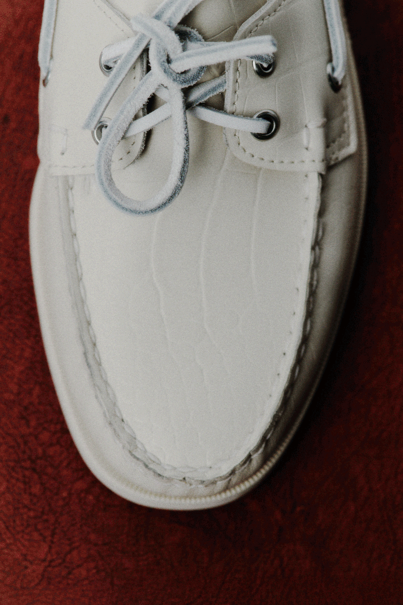 Cult Danish brand NN.07 has teamed up with iconic footwear brand Sebago for a special release of the Dockside Portland, reimagined in a crisp, cream crocodile-embossed leather. Built for long days by the water, the shoe features a lightweight, water-resistant upper and anti-slip rubber soles, offering reliable grip. Each pair is hand-sewn using premium off-white cow leather, and finished with a 360° rawhide lace system, personalised woven label and in-sock, alongside non-marking soles designed to navigate days at sea.