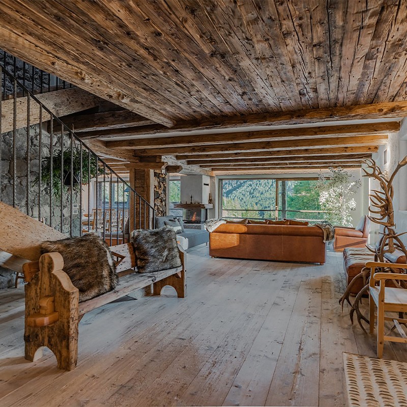 Cesa de Louf is an ultra-luxury chalet in Arabba in the Italian Dolomites. Made for special group trips, the property sleeps up to 20 guests with five suites and mezzanine bedrooms spread over three floors. Set on a vast estate with acres of woodland to explore, confident skiers can enjoy ski in, ski out facilities, while beginners can practise their skills on the small, private ski slope with a rope tow lift. Built from natural stone and ancient wood, the chalet itself is an ancient farmhouse comprised of two buildings, both of which have been carefully restored and refurbished with modern luxuries. Balconies and terraces surround the chalet, offering panoramic mountain views – the perfect place to relax on sunny afternoons, or stargaze using the chalet’s telescope. The property also has a cinema room, a spa with a jacuzzi, sauna and hammam, and a private heliport.