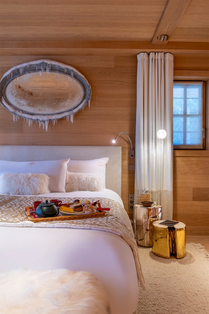 January sees the launch of Experimental Chalet Val d'Isère – and it’s available to book now. Following the success of the Experimental Chalet Verbier, Experimental Group’s second French Alps hotel will have 113 rooms, a spa, cocktail bar, large brasserie and an intimate restaurant where guests can enjoy obligatory fondue and raclette by the fireplace. We love the look of the interiors. Designer Dorothée Meilichzon, who has contributed to several of the brand's on-trend projects and spent her childhood skiing in Val d'Isère, orchestrated the renovation of the 45-year-old building. Her inspiration blends the aesthetics of American ski chalets with Savoyard tradition. The lobby's stone fireplace and rustic log and branch furniture recall the atmosphere of Colorado, while the wooden sculptures decorating the restaurant walls are inspired by local butter moulds and pastry utensils, paying homage to the region's baking history.