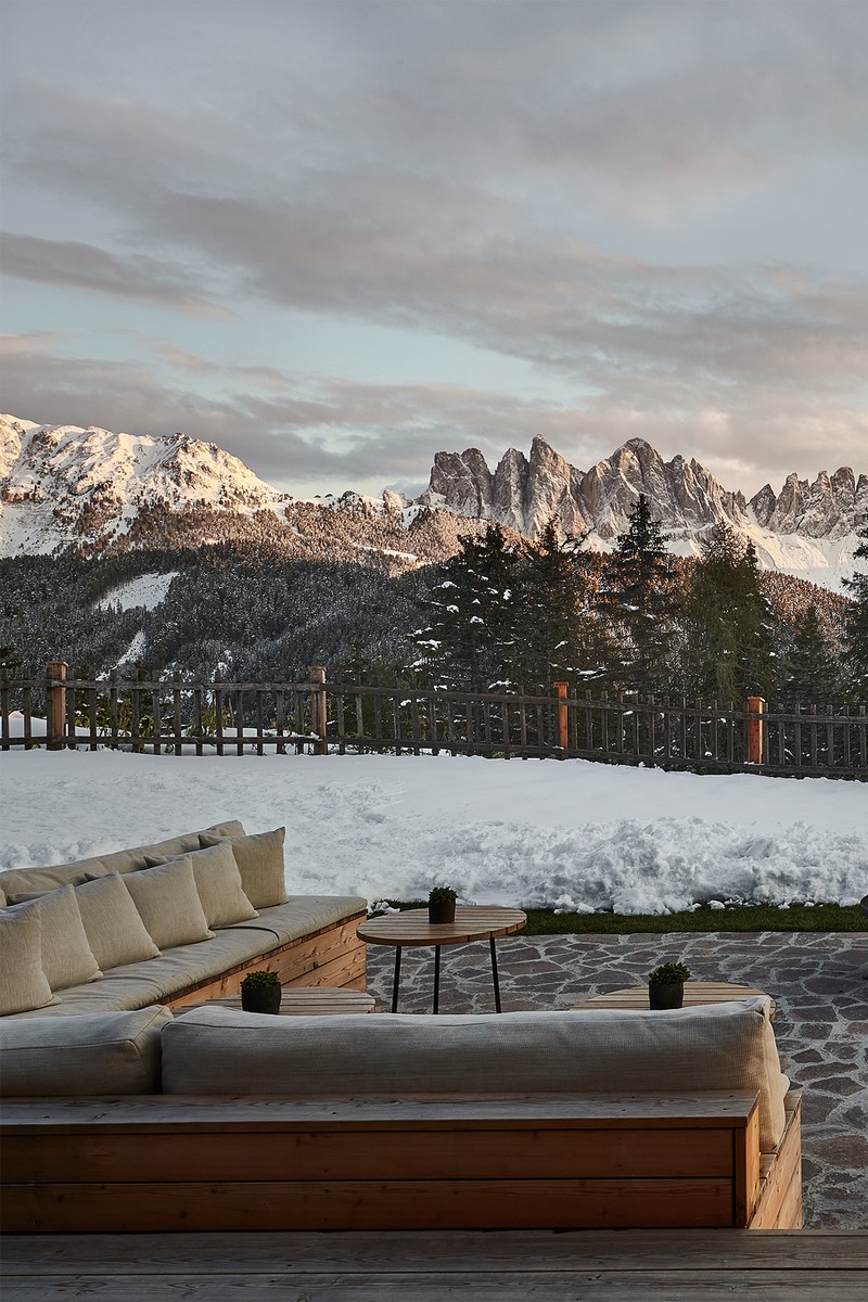 In South Tyrol, on the southern slope of the Plose mountain, Forestis is a luxury mountain retreat that juxtaposes bold, contemporary architecture against striking Dolomite scenery. The retreat features 62 luxury suites, all with panoramic views of the Dolomites, and offers an extensive range of year-round wellness packages and curated experiences, including ski-in, ski-out access to the slopes. Famed for its innovative ‘Forest Cuisine’, head chef Roland Lamprecht only uses seasonal, locally sourced and foraged ingredients – and this season sees a new seven-course menu created every single day. All this is served in a restaurant with a tiered layout, which offers every diner a front-row view of the mountain vistas. After a day of skiing or snowshoeing, be sure to check into the Forestis Spa. Decorated in natural materials and relaxing tones – much like the rest of the property – the concept is based on native trees: mountain pine, spruce, larch and Swiss pine. There’s also an indoor/outdoor pool filled with waters from the Plose mountain, naturally filtered by Dolomite rock formations for that true sense of place.