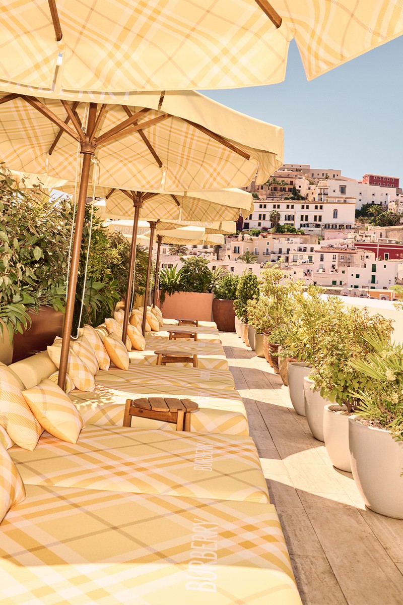Burberry has taken over the Newt in Somerset’s estate until 18th August. Burberry’s signature check has been woven into the fabric of the estate, through parasols, golf buggies and more. The buggies are there for tours of the 2,000-acre gardens – along the way you’ll see the check has even be mown into the croquet lawn. You could also explore the estate from a Burberry hot-air balloon. And if you’re heading to Ibiza this summer, the heritage brand has also popped up at The Standard hotel with custom-made loungers, parasols and seating.