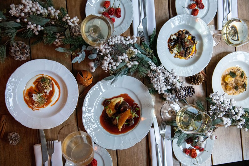 Soho restaurant Firebird is laying on a Mediterranean-inspired Christmas Eve dinner. Tuck into a five-course meal (£85pp) starting with foie gras choux buns, scallops with nduja butter and smoked almonds, and quail with corn and smoked pancetta. Choose venison loin or halibut with seafood bisque for the main, before tucking into lemon sorbet and clementine trifle or poached mulled wine pears with gingerbread ice-cream for dessert. Add on wine pairings for an extra £39pp.
