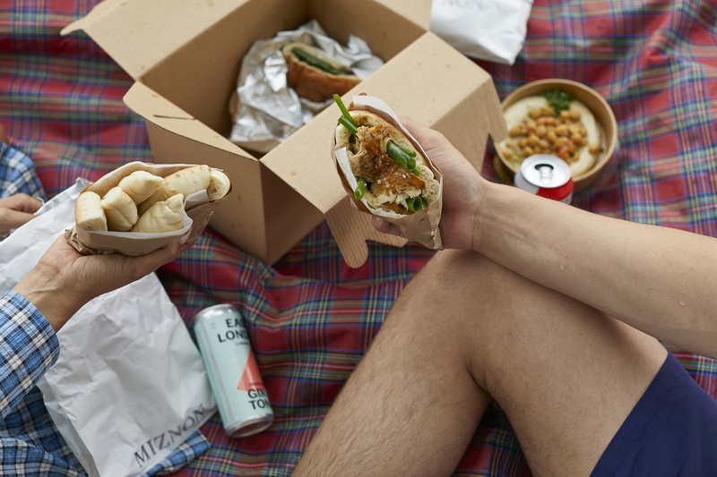 Israeli restaurant Miznon – meaning ‘kiosk’ in Hebrew – first opened in Tel Aviv in 2011 and has since expanded with sites around the world. Headed up by celebrity chef Eyal Shani, it opened two London outposts last year in Soho and Notting Hill. Now, diners can order pitta boxes from both restaurants to enjoy at home or in nearby green spaces like Soho Square or Holland Park. Designed for one or two, boxes include a choice of pitta stuffed with mushrooms with spring onions and sour cream; falafel with tahini, tomato and pickles; or roasted chicken with za’atar and spicy green peppers. You’ll also get hummus and pitta ends for dipping, with the choice to add on soda or beer. Boxes are available throughout summer and start from £14.