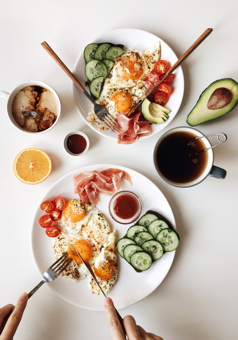 Countless studies show high-protein diets are associated with better health and lower body fat. Main meals should always be rich in protein and fibre. This will help keep you full and reduce the likelihood of subsequent overeating, and also support overall health. Starting your day with protein is particularly important – omelettes, eggs on toast, Greek yoghurt and flavoured protein powder are all quick, easy, high-protein options with no faff. The reason protein is so great is because our bodies burn 25-30% of its calories during the digestion process. For every 100 calories of protein we eat, 70-75% are available to be used as energy or stored as fat, whereas for every 100 calories of fat we eat, virtually all are used as energy or stored as fat. Research shows eating 1-2g of protein per kg of bodyweight is beneficial for general health and fat loss.