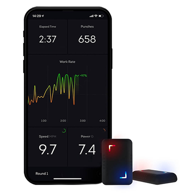 A pair of small, wireless trackers which slip into your hand wraps, this clever piece of kit will connect to your smartphone and show your punches in real time. Use them to track everything from retraction speed to punch count.