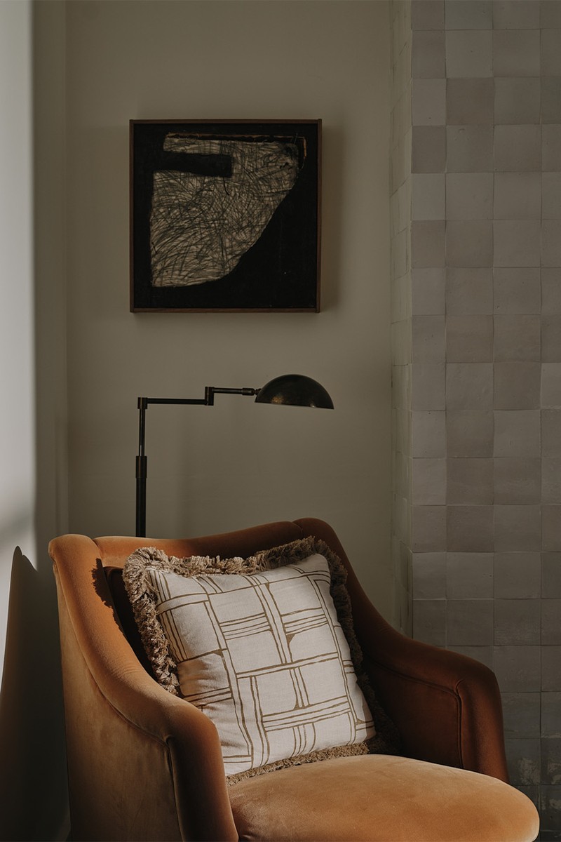 This was designed to be a calm, grounding retreat – a space to step away from the bustle of daily life and sink into reading, conversation or quiet reflection. The inspiration came from warm, textured interiors that layer natural materials in a collected, understated way.