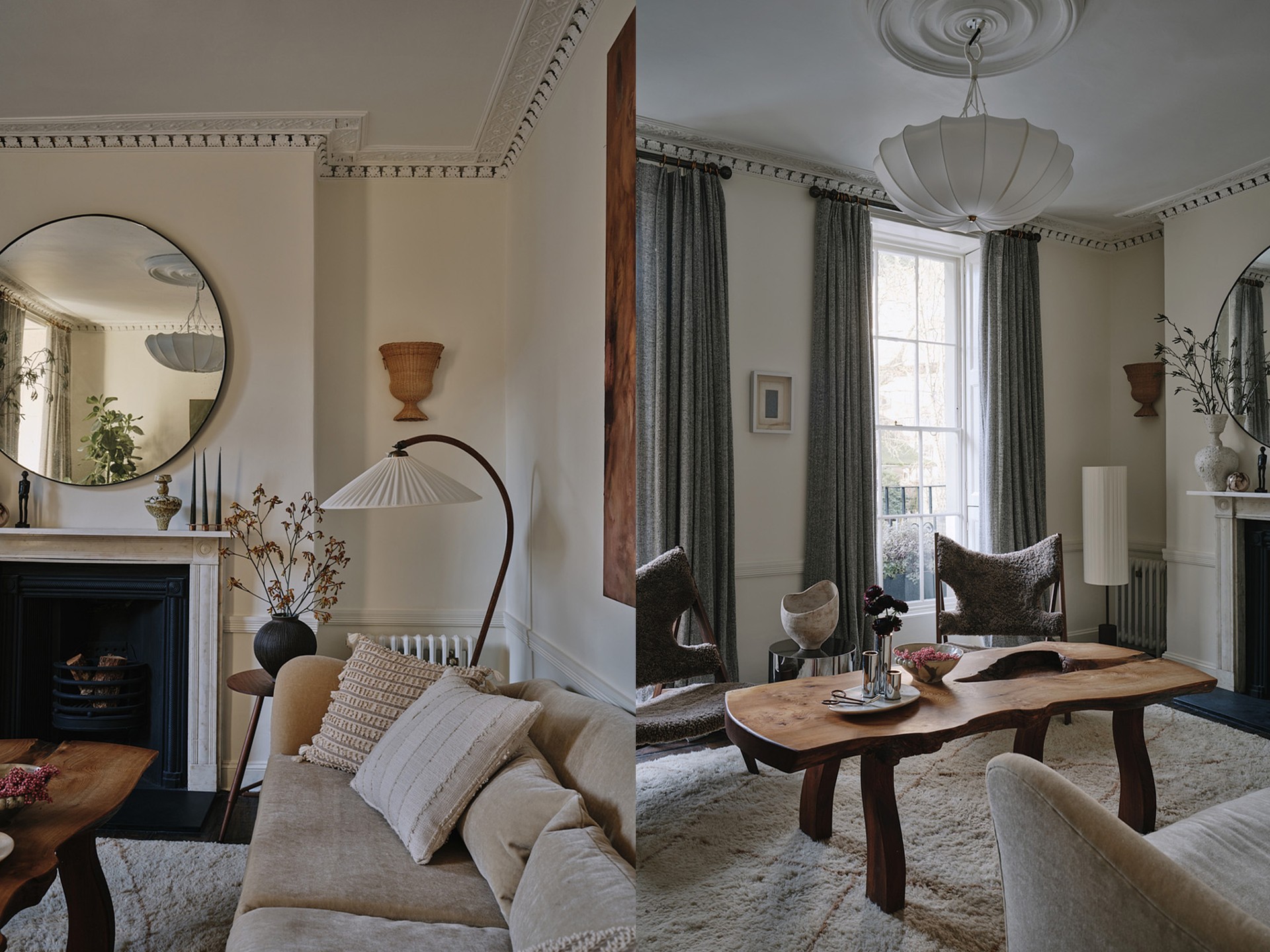 Throughout, natural materials, vintage furniture, layered textiles and artisan-made details create a grounded, collected aesthetic. The project is a testament to working with the bones of a period house while gently reinterpreting its interiors for modern life, achieving a home that feels both timeless and deeply personal.