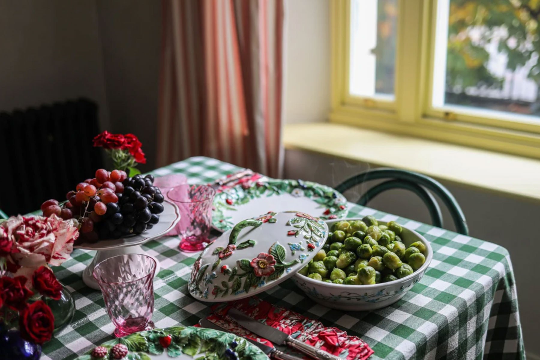 “Keep it as simple as possible: cook a couple of things that you really love rather than going overboard and trying to make lots, which always ends up being stressful (for you and your guests). Make lists with timings of when you're going to do what, so that when it comes to Christmas Day, all you have to do is follow the steps. Go all out with pudding: my favourite is snowy panettone cake. The recipe is in my cookbook, A Table for Friends, but basically you slice a shop-bought panettone crossways, as if you were cutting across a Victoria sponge, then sandwich it back together with whipped cream, cover the whole thing in soft meringue (so it looks like a snowy mountain) and burnish it with a blow torch. You can add a few redcurrants and berries to top it off, if you like. I can't tell you how spectacular it looks – and how good it tastes. Finally, use fruit, cakes and sweets to decorate the table. They look pretty and festive, last longer than flowers – and you can eat them when you're done.”