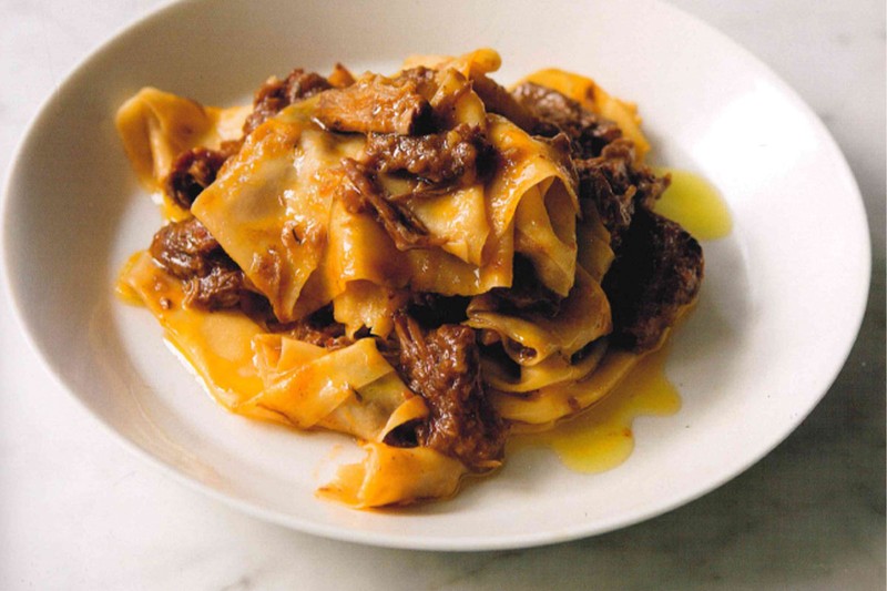 “If you want to impress, beef shoulder ragu pappardelle with chimichurri sauce should do the trick. Start by making the beef ragu. Preheat the oven to 150°C. Heat a glug of olive oil in a large casserole over medium heat. Season 1.5 kg beef shoulder (feather blade) with salt, then brown it all over in the hot oil, turning every 20 seconds for about four to five minutes until nicely caramelised. Remove the beef and set aside. In the same pan, cook a quartered onion and halved carrot in the beef fat for two minutes, then add a halved leek, two crushed garlic cloves, four sprigs of thyme, four sprigs of rosemary and a bay leaf, cooking for another two to three minutes. Stir in half a tablespoon of tomato purée and cook for two minutes before deglazing the pan with 25ml of red wine vinegar. Pour in 500ml of red wine and reduce it until absorbed, then add two litres of beef stock and bring everything to a simmer. Return the beef to the pan, cover with baking paper and cook in the oven for about two and a half hours until tender. Once cooked, strain the cooking liquid, reduce it to a thick sauce, and combine it with the beef after shredding it. Stir in the remaining 25ml of red wine vinegar and adjust the seasoning.