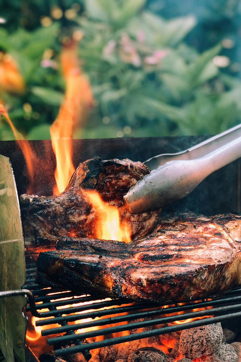 “When I’m cooking a braai (our South African take on a barbecue) I always have sturdy tongs, a head torch for evening grilling, quality salt and cracked pepper, a temperature probe and a proper chef’s knife. Good firewood is essential for creating high-quality coal, and Big Green Egg is my preferred BBQ – it’s incredibly versatile and brilliant for smoking and roasting. My tip is to rest your meat for as long as you cook it, especially with primal cuts. For a South African classic like staanrib, whole lamb ribs need at least three hours over a low, slow fire to get that perfect flavour.”
