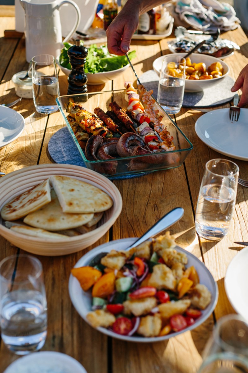 “Kachumber salad is easy to make and complements marinated kebabs. Dice fresh tomatoes, cucumber, onions and chilli peppers, and add in any fresh herbs you like – mint will go nicely with lamb while coriander or parsley compliments chicken. Season generously and add a squeeze of lemon juice or drizzle of olive oil. You can also add in any veg you like, including radishes or peppers.” – Yousuf