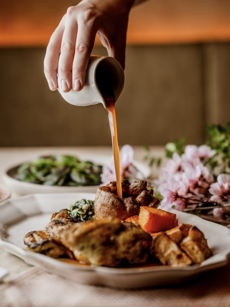 “Sunday lunch wouldn't be Sunday lunch without yorkies – whether you're having beef, chicken, pork or a nut roast. Make your batter the night before, as this yields a fluffier, bigger, better yorkie. Just cling-film it and leave it to rest in the fridge overnight. To get that picture-perfect, classic shape (and to stop them going wonky) heat the fat properly and pour the batter directly into the very middle of the tin.”