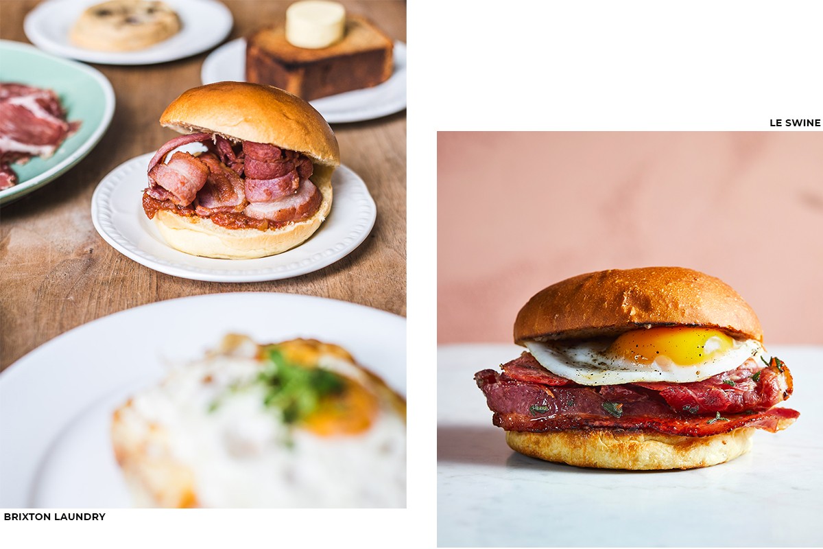 “Every ingredient has to be great quality – and not just the bacon. Every component plays a part. At Le Swine we use middle bacon which is a mix of back and streaky. You can purchase this at a good-quality butchers. Make sure to buy thick rashers of unsmoked back and go for streaky if they don’t have middle – it has the perfect mix of meatiness and fatty streaky. For the bread, I would recommend using a milk bun or a nice thick slice of white tin loaf. Fry your rashers with a tablespoon of vegetable oil. While the bacon is cooking, sprinkle your rashers with the finely chopped sage and season generously with freshly cracked black pepper. Once beautifully caramelised, set aside and keep warm. Add a couple of spoons of the rendered fat from the pan to some room-temperature butter and mix well until combined. Then mix in three or four shakes of Worcestershire sauce to create delicious homemade bacon butter. In a separate pan, slowly cook a duck egg with a small amount of vegetable oil – make sure it has a nice runny yolk. Turn the egg at the last second to seal the white of the egg – no one wants a snotty egg. Lightly toast your buns or bread and slather with your bacon butter. Add your bacon and egg and tuck in. I’ll leave the choice of sauce up to you, but surely it has to be brown?”