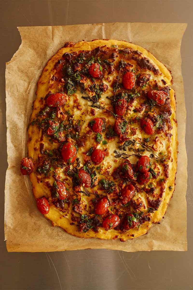 Baked Polenta With Feta, Bechamel & Za’atar Tomatoes