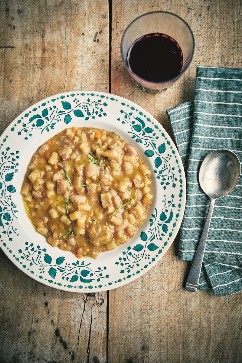 This is the classic Florentine beef stew. It’s a dish of extremely deep flavours and comforting textures, and it’s not a preparation that can be rushed. You need at least four hours, preferably more, and as with many Tuscan recipes, it is improved by leaving overnight. I’d love to be able to say you can use an alternative cut if you can’t get hold of beef shin, but it really must be shin. And you must leave the fat on – do not be tempted to trim. Your butcher will always be able to provide shin even if your supermarket can’t. Additionally, the wine element needs to be on brand and regional. Chianti or even a standard sangiovese will provide much better results than a cheap new-world merlot.