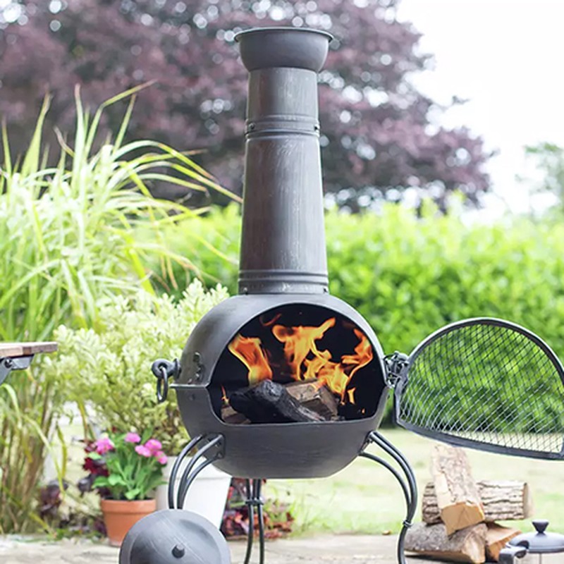 When it comes to chimineas, La Hacienda is the go-to brand. Behind a mesh door, this traditional model burns coal or wood. Chimineas are best kept on sturdy ground so keep it away from grass.