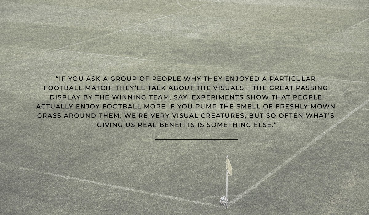 Wherever we are, whatever we’re doing, we’re in an environment. That environment has a scent, a sound, a visual appearance and so on. We’re not always aware of our environment – it’s often just background for us – but it is always impacting us. Through our senses it can influence our mood, our behaviour, our performance. We might feel like we’re in control of our own destiny, but there are now a lot of experiments and research to show that, for example, how awake I feel right now isn’t just down to me. It’s also down to the weather or maybe the ambient smell of the floor cleaner I’m getting right now.