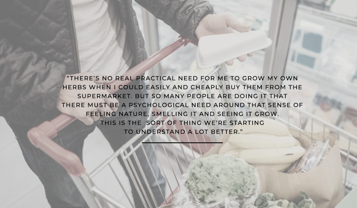 At a wider level, I think we are starting to appreciate that our happiness doesn’t necessarily correspond to financial security. Governments and organisations are thinking about well-being metrics that account for elements like contact with nature. Look at how much greenery is being brought into offices! And that’s the right thing to be doing: just this week I was reading about a study that shows a correlation between the amount of people on antidepressants in a certain area and the amount of greenery in that area.