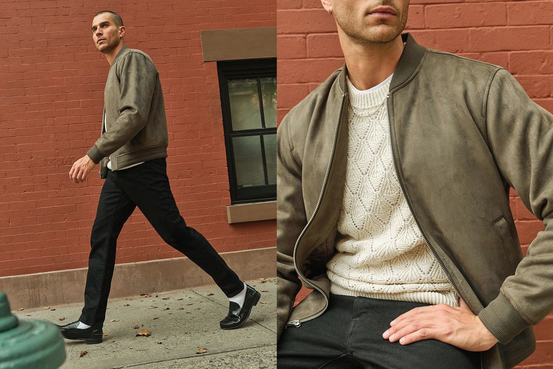 A suede bomber jacket is a hardworking piece at this time of year. Pair it with classic Abercrombie denim and a tee, or smarten things up with chinos or smart trousers and a shirt.