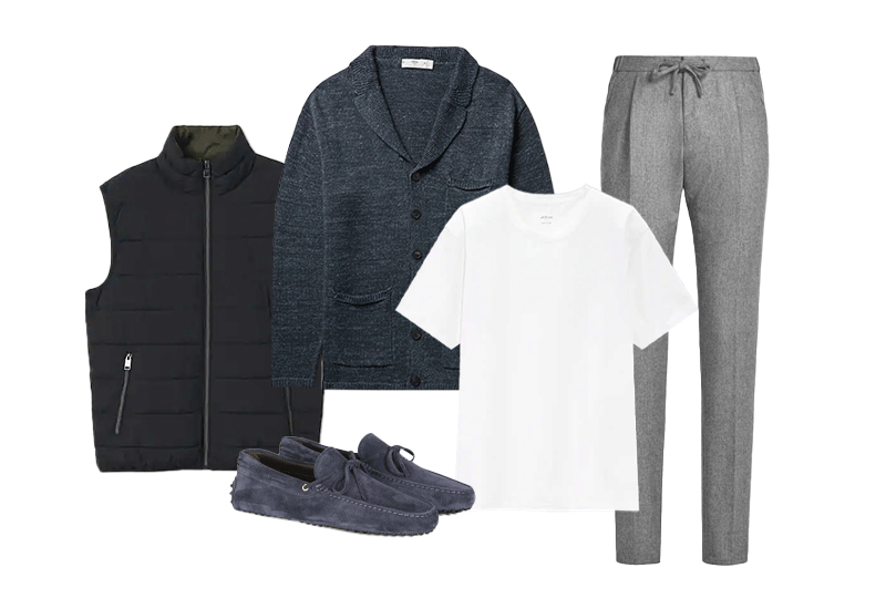 Working from home? Add elasticated waist trousers and driving shoes to feel relaxed yet pulled together, then throw on a gilet if you’re heading out.