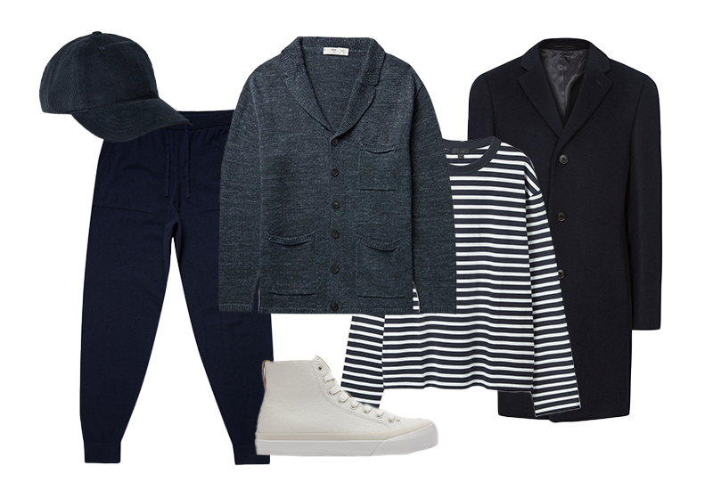 Layer up with cashmere joggers and a striped tee for a comfy yet cool weekend look. Just add a cap and high-top trainers for a bit of interest.