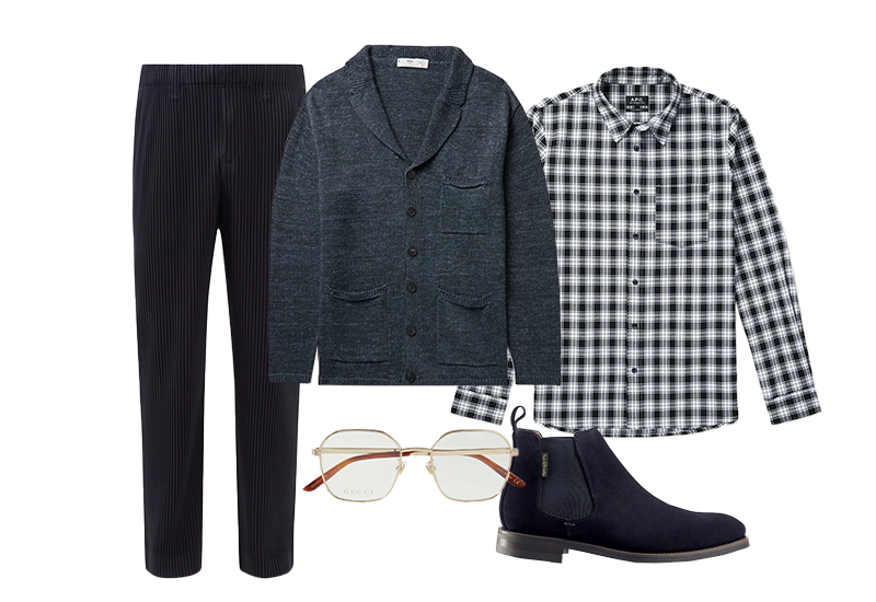 A cardigan layered over a shirt is a classic combination – mix in different textures and prints, like tartan and cord, to keep things modern.