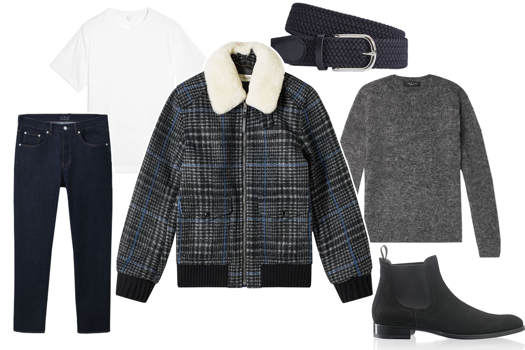 When wearing a statement print such as check, keep the rest of your outfit to the same colour palette. If your jacket has blue and grey in the fabric opt for dark blue jeans and a grey knit. Finish the look off with Chelsea boots for a perfect smart pub lunch outfit.