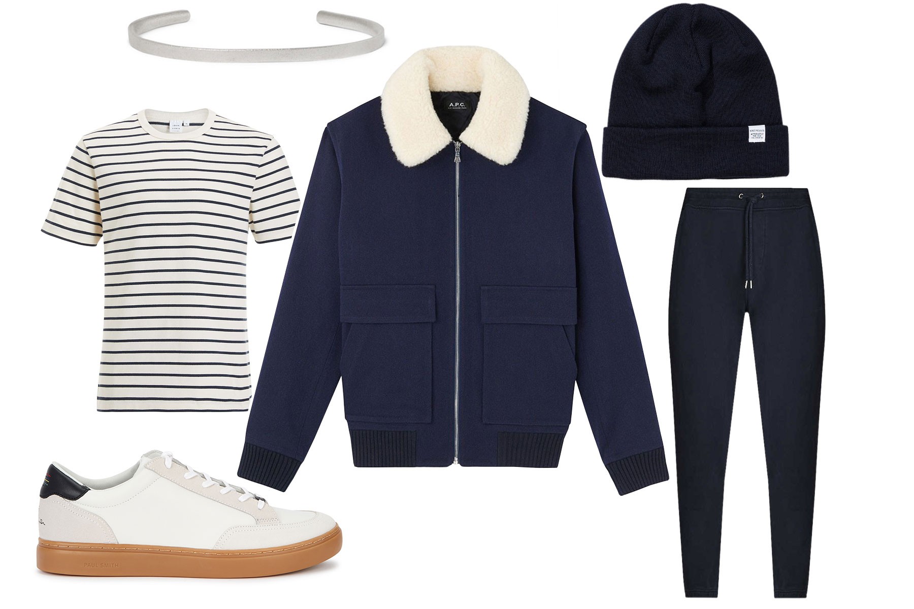White and navy is a strong colour pairing and always looks stylish. Layer your bomber jacket over a Breton striped tee and wear with tailored jogging bottoms and retro inspired trainers to nail off-duty style.