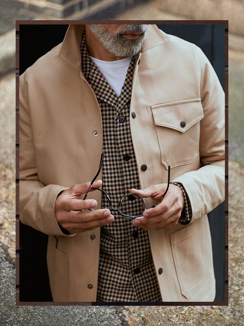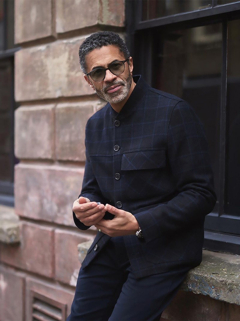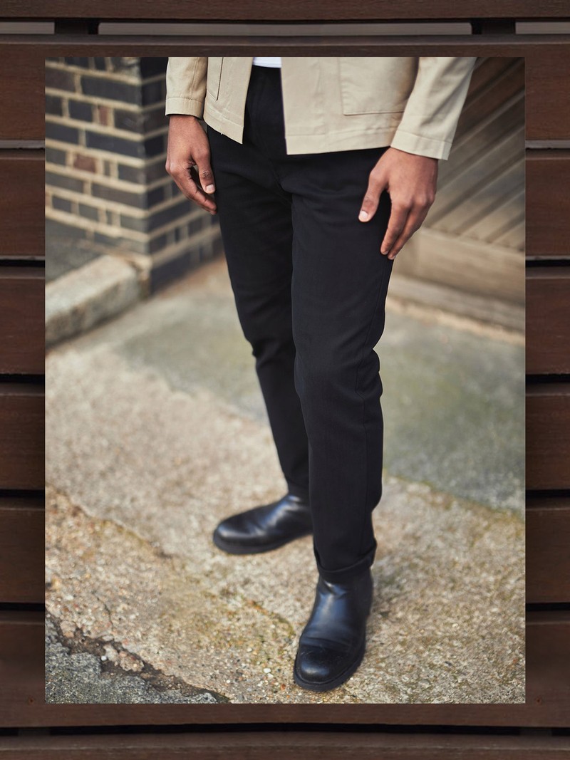 Best known for its outerwear, it’s no surprise to hear one of the brand’s bestsellers is an Italian-made, soft-handle moleskin shacket. To achieve the ‘Wear London’ look, co-founder Alex suggests opting for some of their hero pieces. “Style our crisp white ‘Hoxton’ t-shirt under the ‘Wentworth’ shirt, and finish with a ‘Bar’ shacket in navy moleskin. If there’s a chance of rain, throw over our Bank mac.”