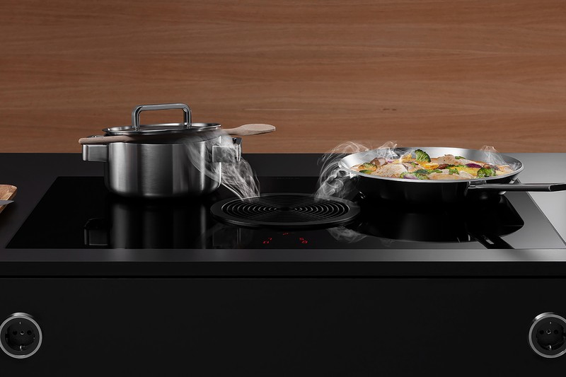We didn’t know whether to go for an induction hob, gas hob or Tepan stainless steel grill. Bora offers a mix of everything. I’m a big cook, so I’ve gone for gas, induction and Tepan and then there are two extractor fans in between. Usually, extractor fans take up so much space, but Bora’s extractor system is built directly into the hob. They’re hugely powerful and they automatically adjust their settings depending on how steamy it’s getting. It’s pretty cool watching it in action, as the extractor just appears from nowhere. I had friends over the other day and when I switched it on to cook and the fans rose up, they were like: “Sorry, what’s going on? This is like something from Top Gun!” In the old house, if we cooked a curry or fish the whole house would smell for about three days. And because the motors are hidden, it isn’t noisy either.
