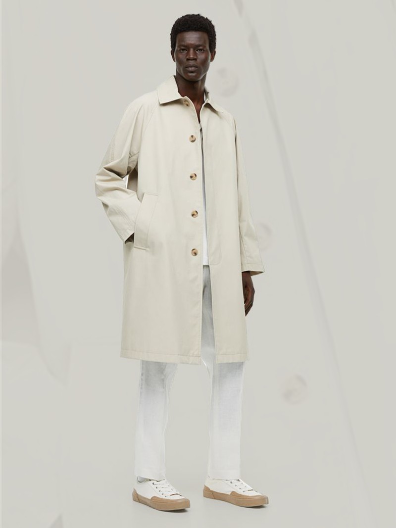 A weatherproof trench smartens up any spring look. This timeless beige number from H&M has a loose fit that will slip over suits for work or knitwear at the weekend.