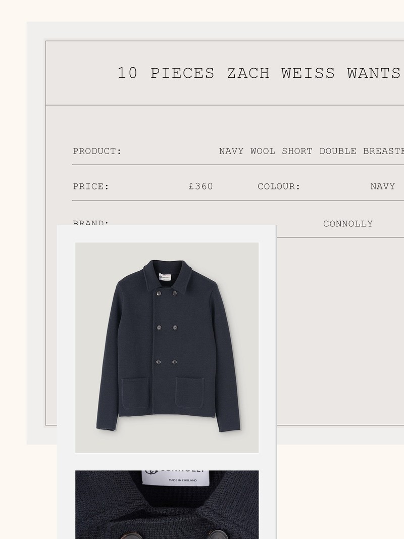 Connolly is a must-visit shop every time I’m in London. Most come for the leather goods, but my favourites are the knits, including this mac I’ve collected in several colours. The weight and texture are unlike anything else I’ve come across.