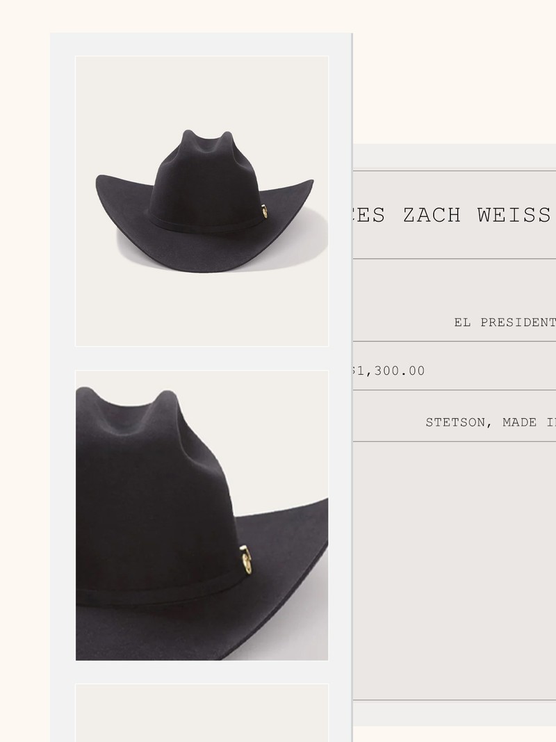 El Presidente 100X Premier Cowboy Hat, $1,300 | Stetson