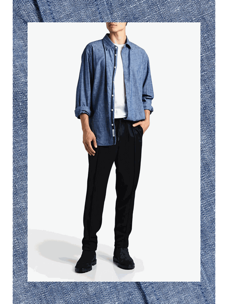 Worn open with a tee and cream trousers or buttoned up with smarter bottoms, a chambray shirt is something you can style year round.