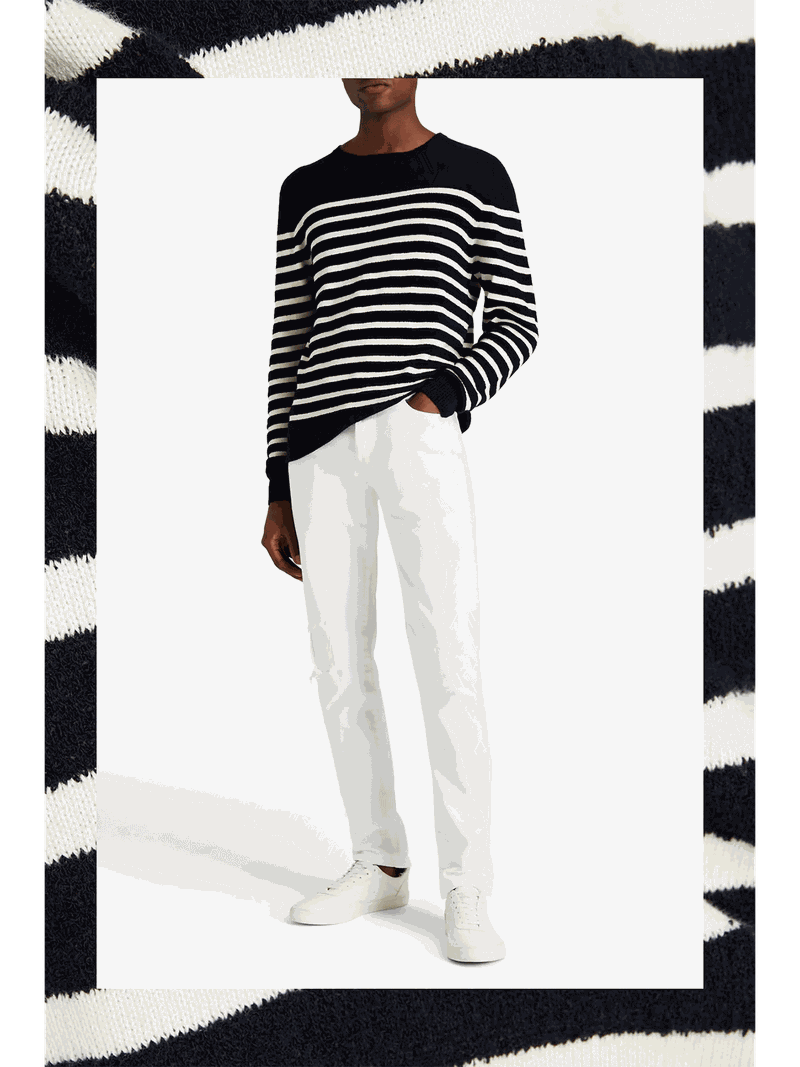Paired with denim, tailored trousers or chinos, a Breton stripe jumper or top will work hard for you. Wear it now on its own, then layer it under a shacket or a long coat as it gets colder.