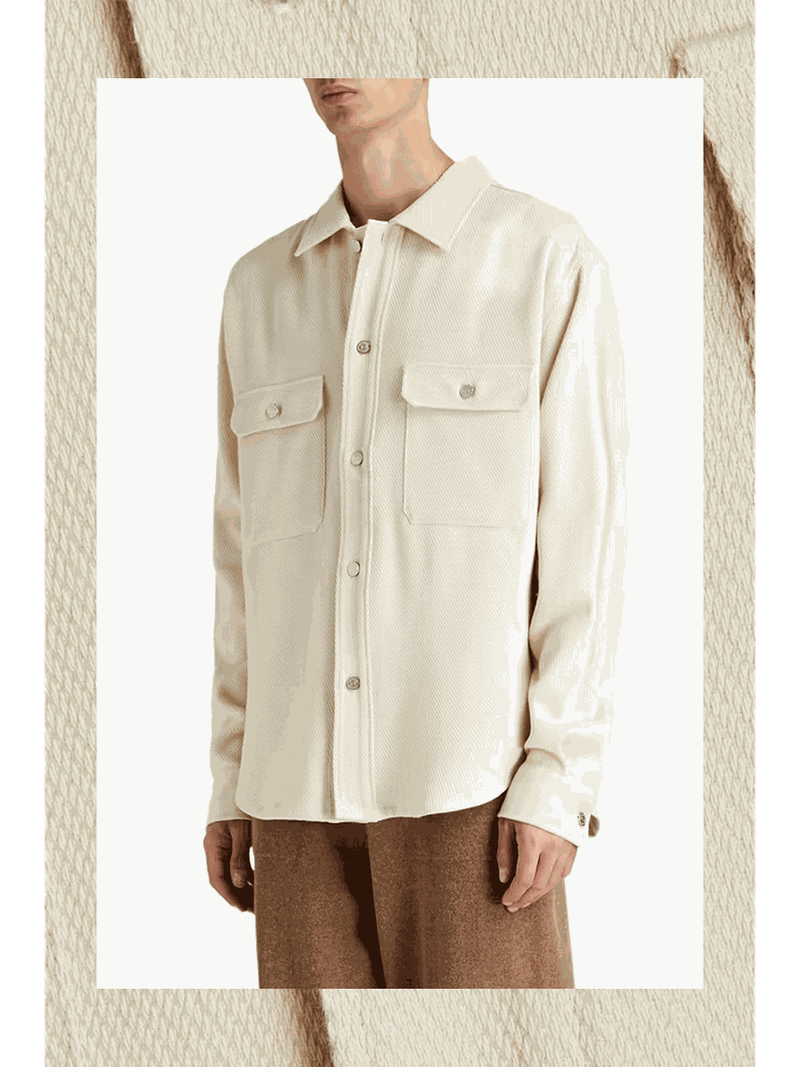 For those times when a t-shirt isn’t enough but a coat feels too much, make a shacket your go-to. Khaki, navy and off-white are classic choices.