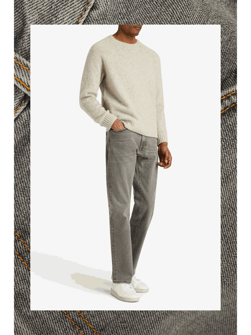 An alternative to classic blue, a stylish grey pair of jeans feels that bit more autum-appropriate. Team them with a simple jumper and a shacket.