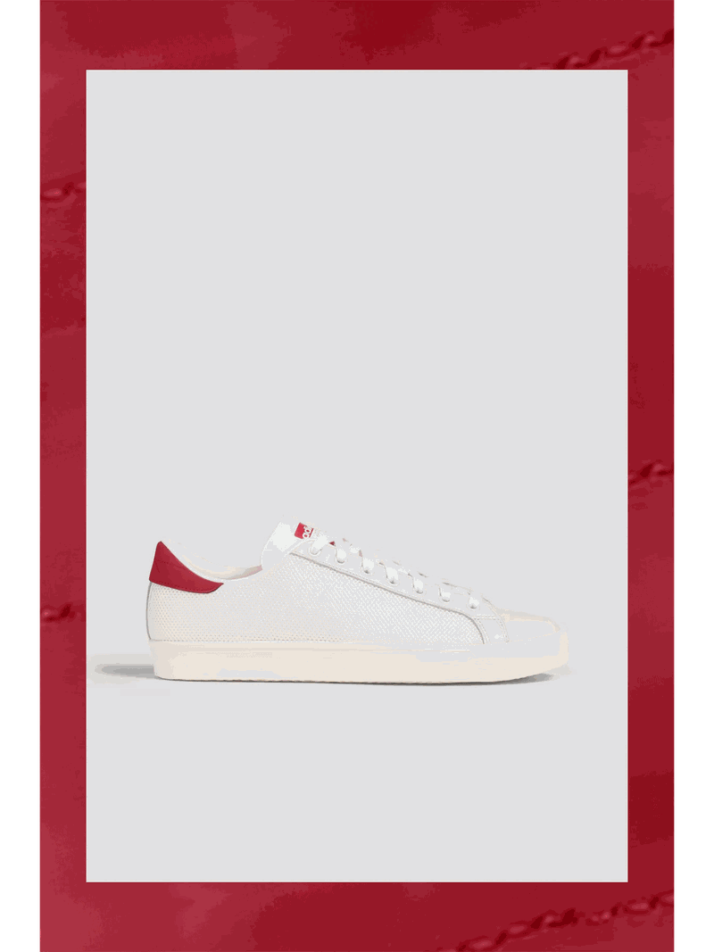 No capsule wardrobe is complete without a pair of white trainers. The red appliqué details on this pair give them a unique point of difference.