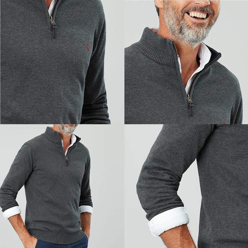 A grey zip-up is an easy hack for smartening up those Zoom calls, and this simple style does the trick. Pair with a shirt for extra polish.