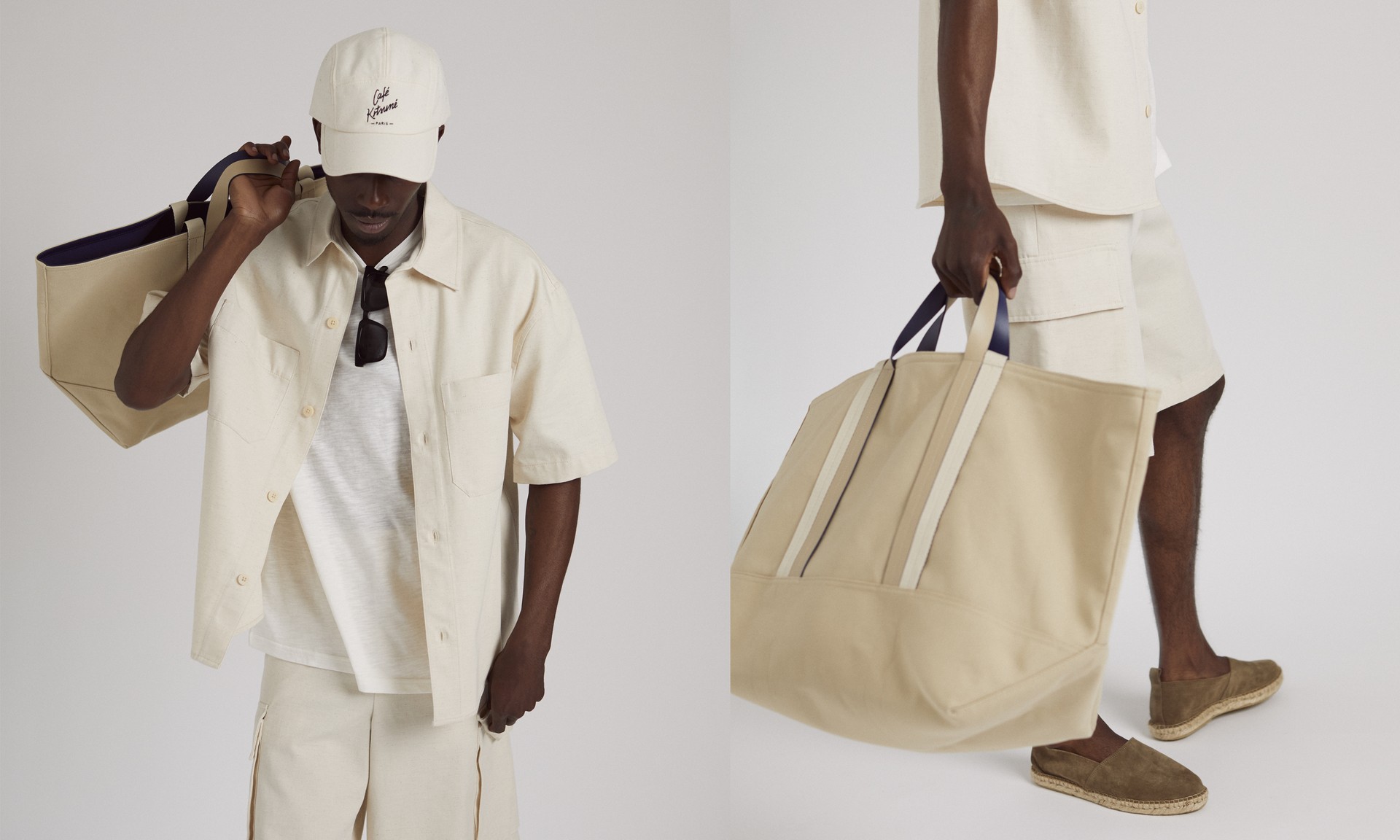 Conduit Slub Cotton-Jersey T-Shirt, £70 | Oliver Spencer, Linen Cargo Bermuda Shorts, £25.99 (were £32.99) | Zara, Cotton Linen Overshirt, £32.99 (was £45.99) | Zara, Helio Suede Espadrilles, £145 | Frescobol Carioca, Reversible Leather-Trimmed Cotton-Canvas Tote Bag, £137.50 (was £275) | Paul Smith, Logo-Embroidered Cotton-Blend Twill Baseball Cap, £45.50 | Café Kitsuné