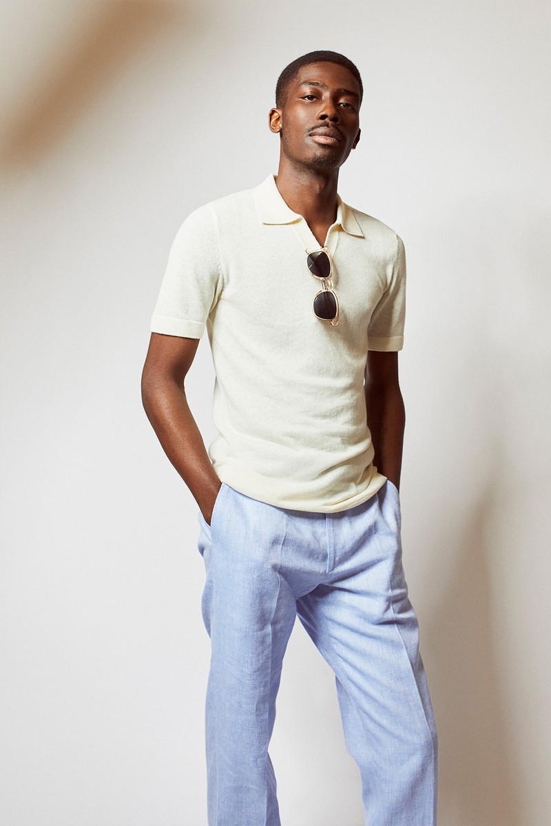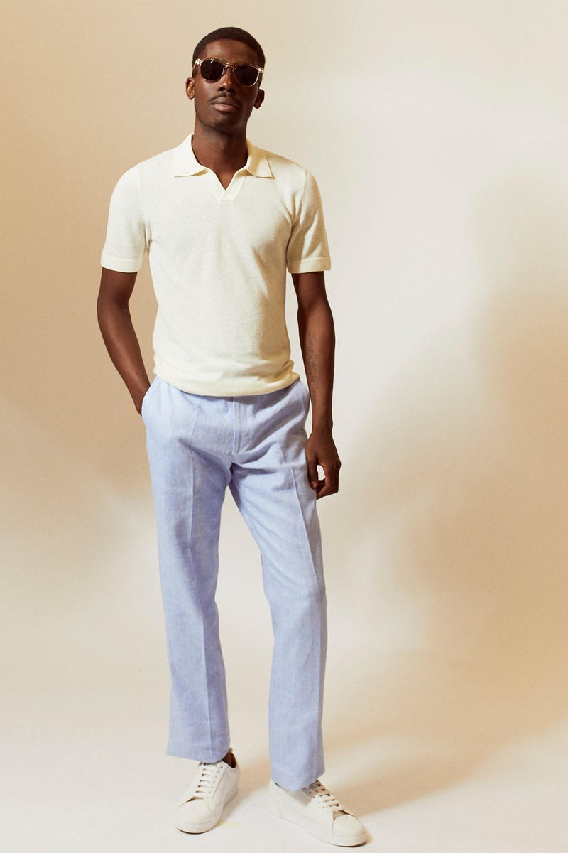 Ideal for a lunch in the sun, this polo pairs seamlessly with blue. To finish, you can’t go wrong with classic white trainers and sunnies.