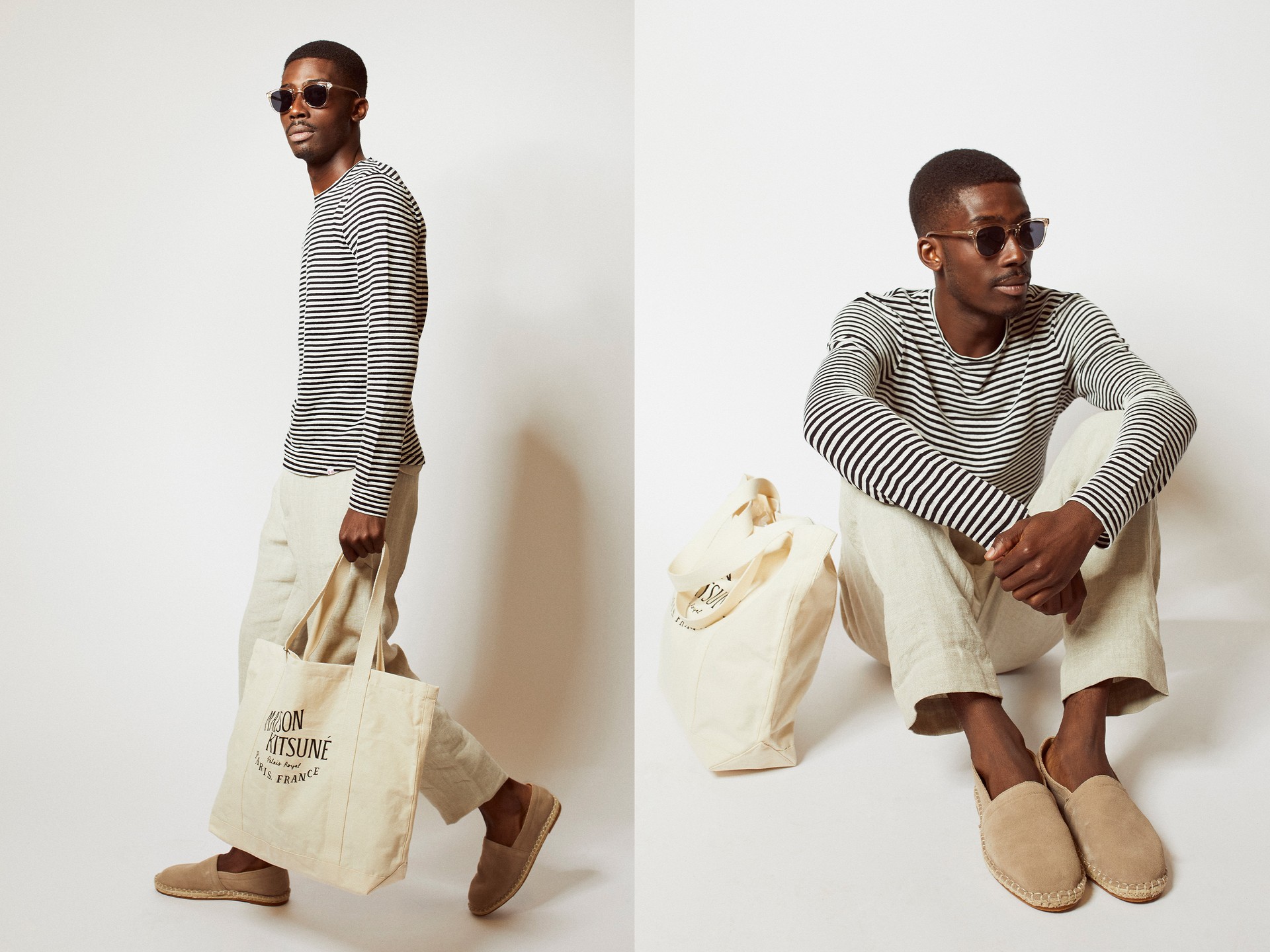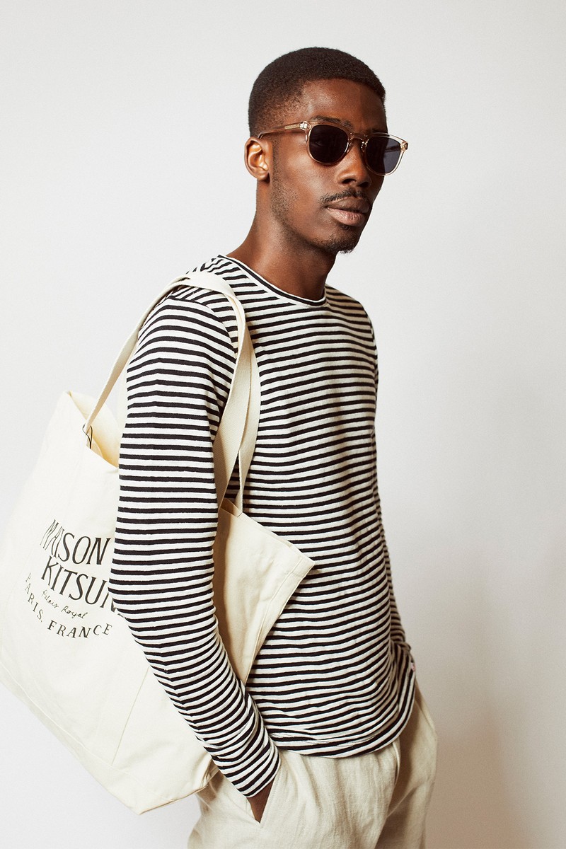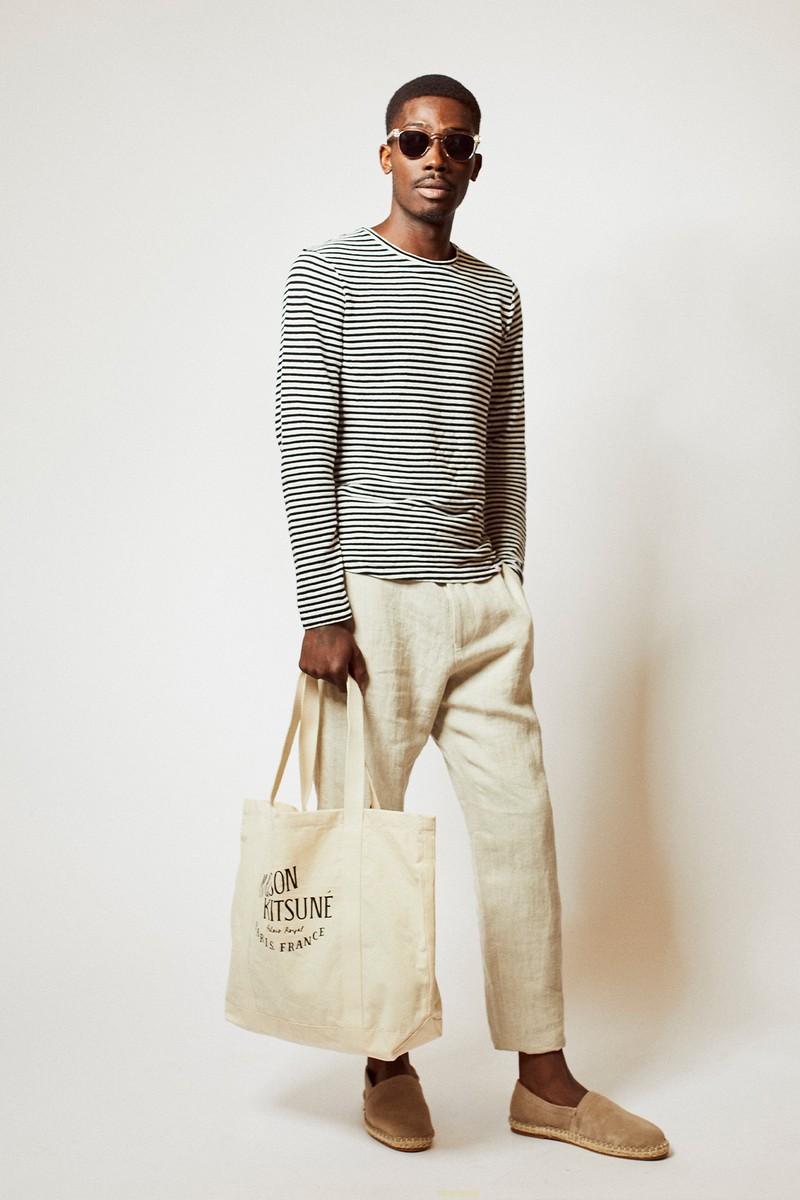 A boxy striped long sleeve and neutral linen trousers are the perfect match. Add a logo tote for a functional, cool touch.