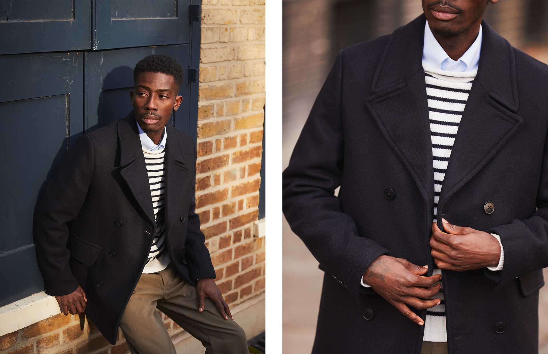 A peacoat strikes the perfect balance between smart and casual – style with chinos and chunky knits for a preppy look.