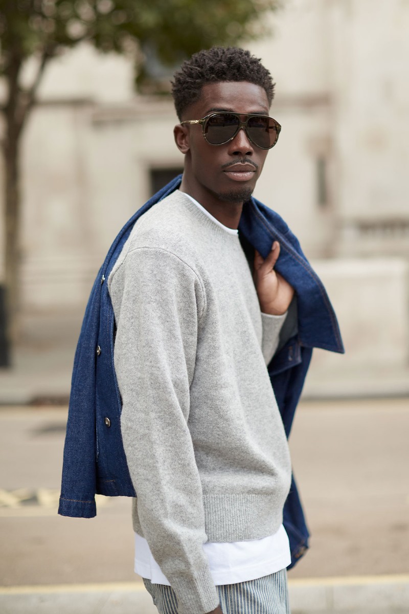 For something a bit different, try a subtle detail like this stripe. Keep the rest of your look simple – you can’t go wrong with a classic denim jacket and a grey knit.
