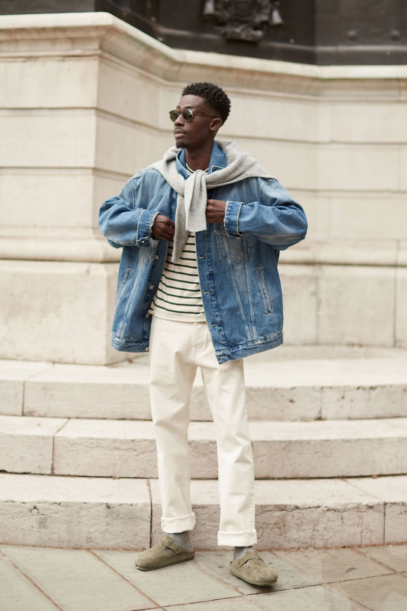 It’s not difficult to style denim when you’ve got an obvious contrast. Classic blue pairs easily with fresh white or cream – just remember to keep everything a bit oversized.